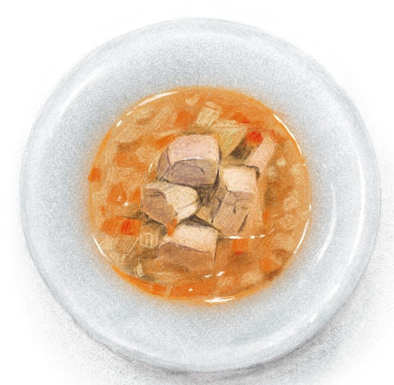 体内にこもった熱が気になる愛犬に、からだをクールダウンさせながら血の巡りを整えるスープごはん。血をつくり・巡らせる作用を持つマグロを主役に、ピーマン・にんじん・セロリ・大根・トマトの5種の野菜を組み合わせ、消化不良や気の高ぶりをやさしく和らげます。